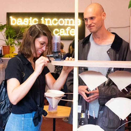 Martina Huynh en Jonas Althaus (beide in 2018 afgestudeerd aan Design Academy Eindhoven) zijn gespecialiseerd in design research en interactieve installaties. Onder de naam Cream on Chrome werken zij samen vanuit Rotterdam. Met het Basic Income Café (2018) vertaalden zij het complexe idee van een basisinkomen naar een laagdrempelige installatie waarin koffie werd gebruikt om de geldstroom te visualiseren en het gesprek aan te gaan.