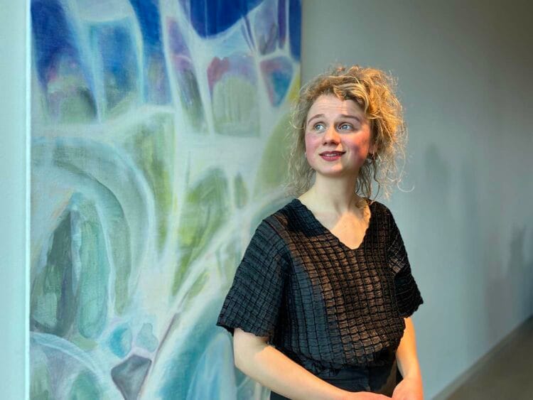Jildau: “In de ontmoeting met het oude glas in de villa van Singer Laren vond ik schilderkunst. Het gefragmenteerde beeld dat door het glas ontstaat, vraagt om een specifieke schildertoets – het schakeren van licht en kleur vertaalt zich als vanzelf naar mijn penseelstreken.”